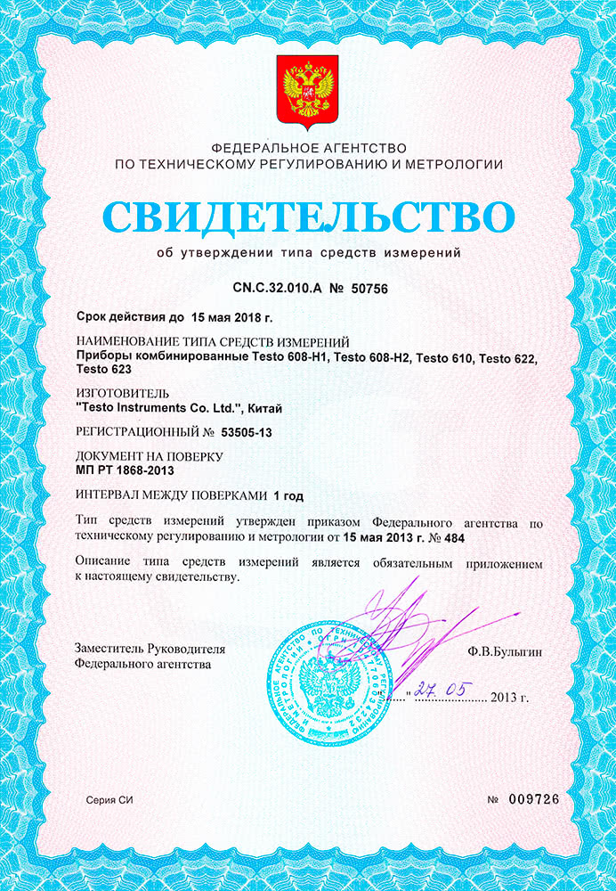 Термогигрометр testo 608-H1 соответствует стандартам: