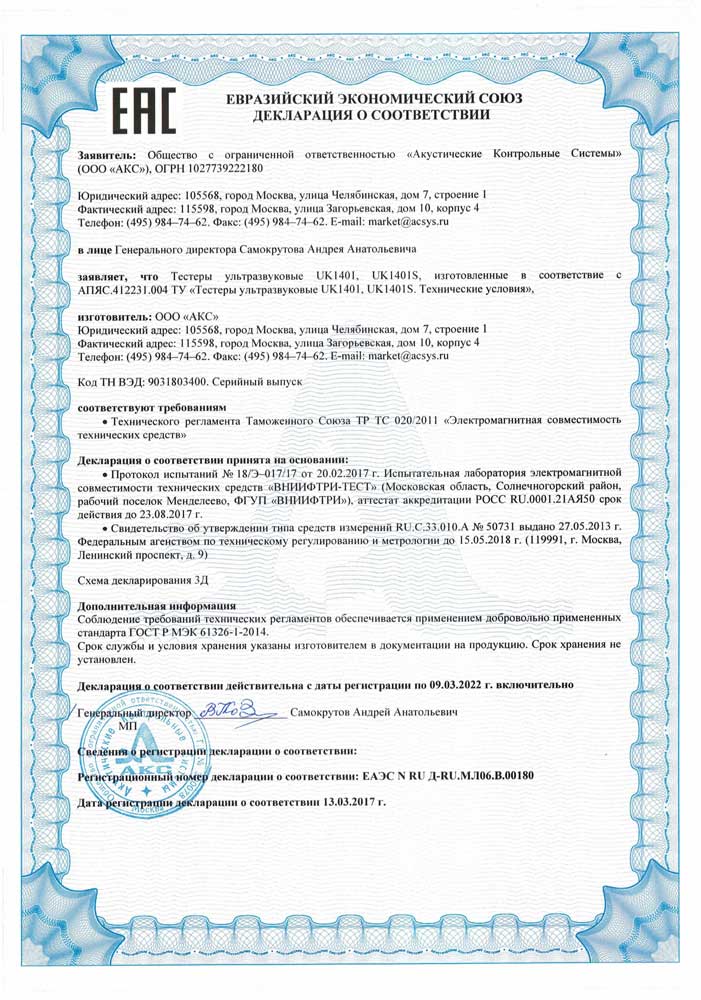 Ультразвуковой тестер UK1401 соответствует стандартам: