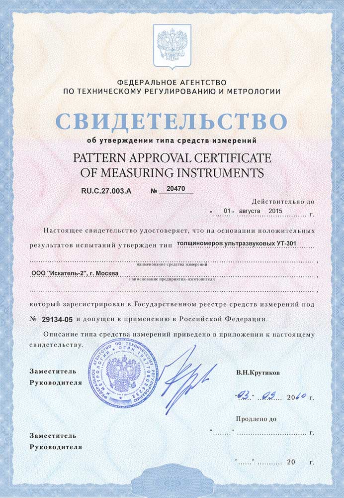 Ультразвуковой толщиномер УТ-301 соответствует стандартам: