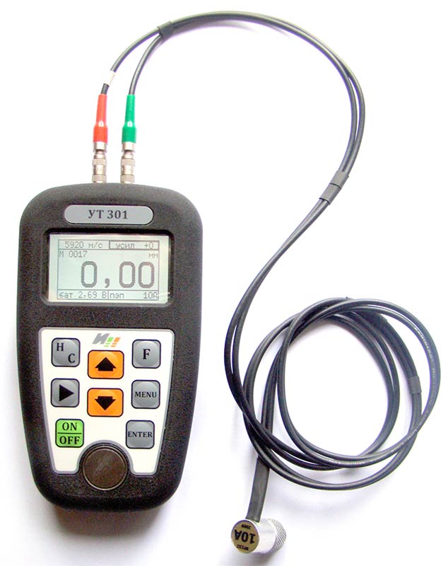 Ультразвуковой толщиномер УТ-301 предназначен для контроля стенок сосудов, труб, котлов и других изделий в диапазоне от 0,5 до 300 мм. Конструкция призм преобразователей позволяет контролировать изделия с малым радиусом кривизны, а также с грубыми и корродированными поверхностями.